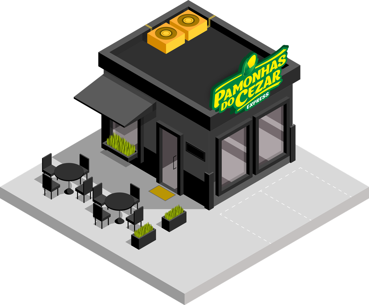 Modelo de restaurante pronto para funcionar na rua, com tudo que você precisa para atender em centros urbanos. Fale conosco e saiba mais.